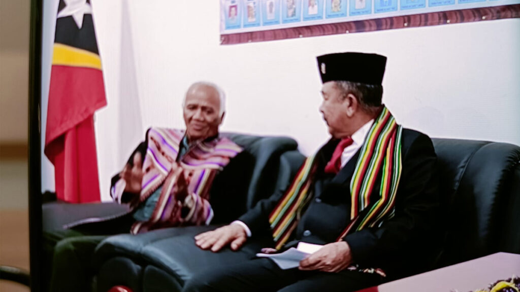 Kehangatan itu berlanjut di ruang pertemuan kantor CCLN. Di belakang dua kursi utama, tampak terpasang bendera Timor Leste dan bendera merah putih.